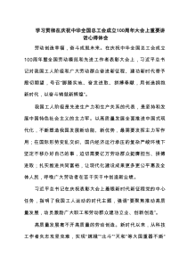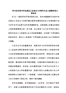 学习领悟在庆祝中华全国总工会成立100周年大会上重要讲话心得体会(3篇集合)