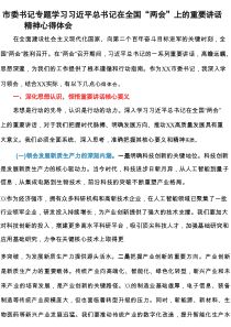 市委书记专题学习习近平总书记在全国“两会”上的重要讲话精神心得体会