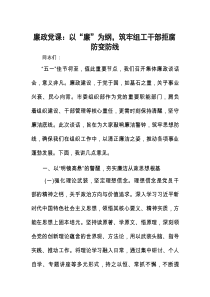 廉政党课:以“廉”为纲,筑牢组工干部拒腐防变防线
