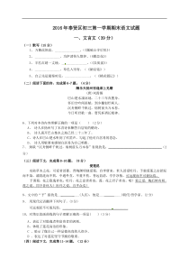 上海市奉贤区2016届九年级上学期期末调研考试语文试题
