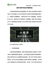 成都小程序开发的红利期别错过