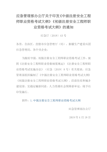 中级注册安全工程师职业资格考试大纲(2019年)