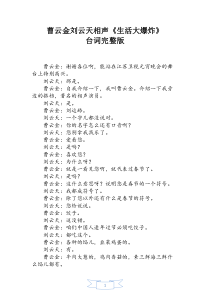 相声生活大爆炸台词完整版曹金云刘云天