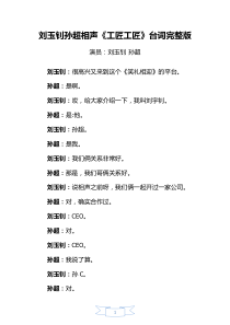 相声工匠工匠台词完整版刘玉钊孙超
