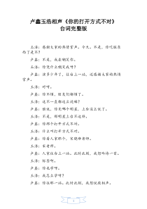 相声你的打开方式不对台词完整版卢鑫玉浩