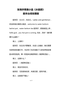 情景小品水底捞台词完整版张海宇蒋易